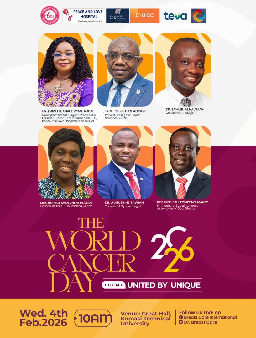 Breast Care International (BCI) will commemorate World Cancer Day 2026 with a series of impactful advocacy, education, and screening activities aimed at promoting cancer awareness and early detection. On February 3, 2026, BCI will organize a Senior High School Outreach and Community Engagement Program at Tepa Senior High School, where breast cancer education, awareness sessions, and clinical screening will be provided for students, staff, and members of the surrounding community. The program will focus on cancer prevention, early detection, and the reduction of stigma.